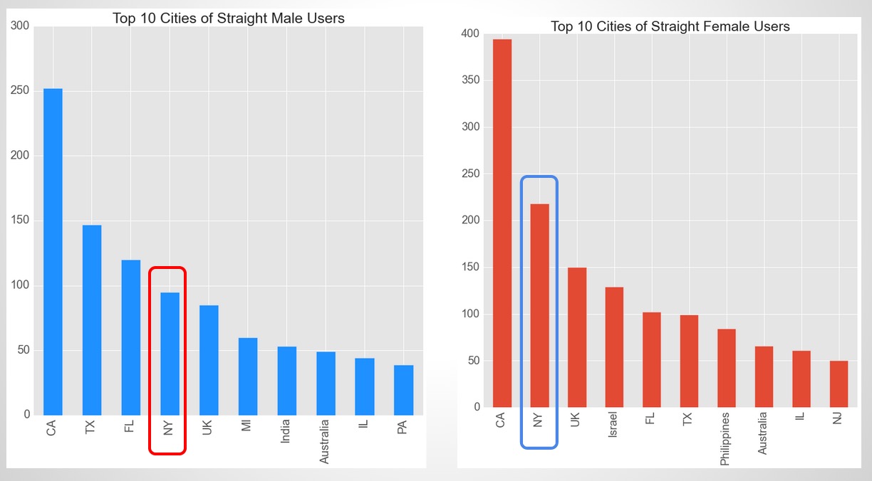 plt.title('Top 10 Cities of Straight Female Users', fontsize=25)